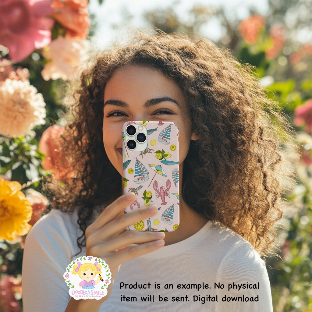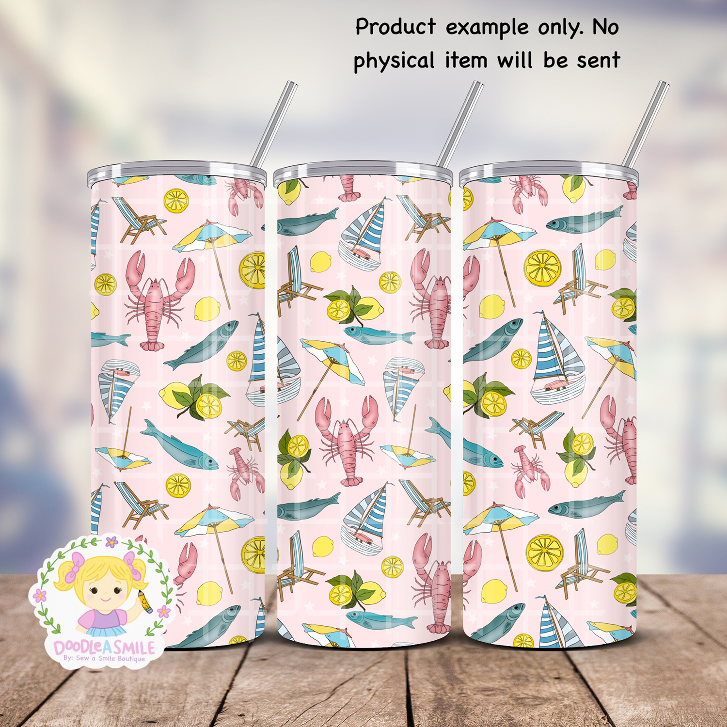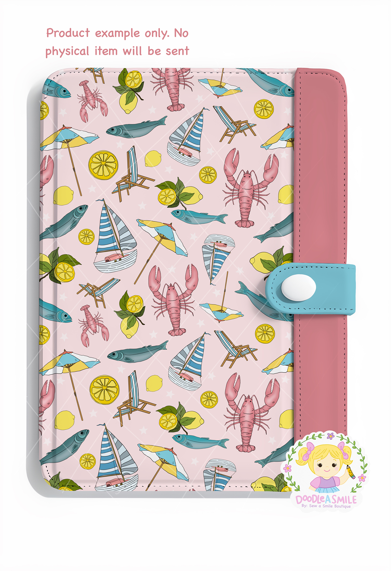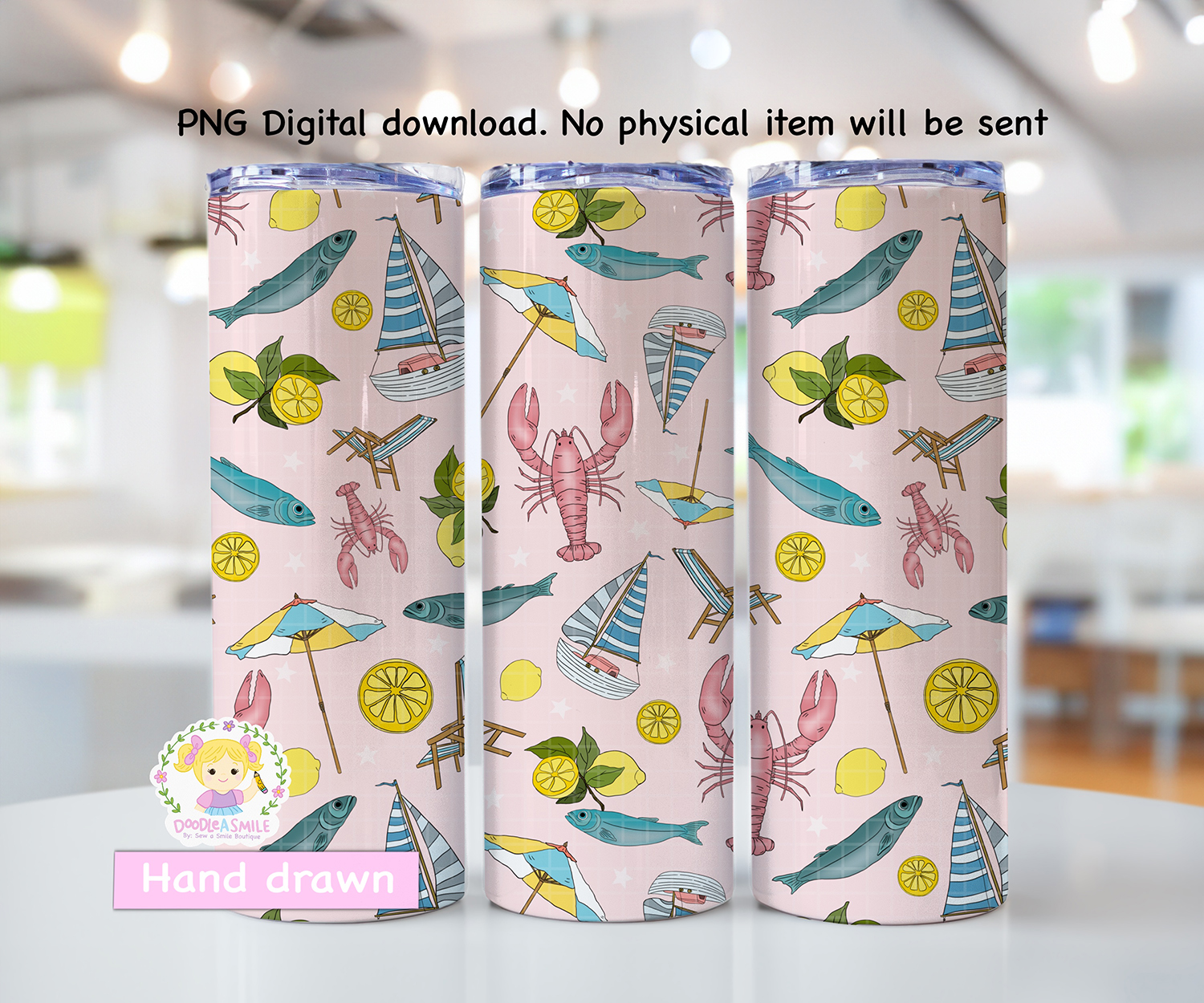 Amalfi Coast seamless pattern is a hand drawn design featuring cute pastel motifs including lobster, umbrella, sailboats, sardines and lemons. This pattern is perfect for fabric projects, stationary, scrapbooks, and more – the possibilities are endless!