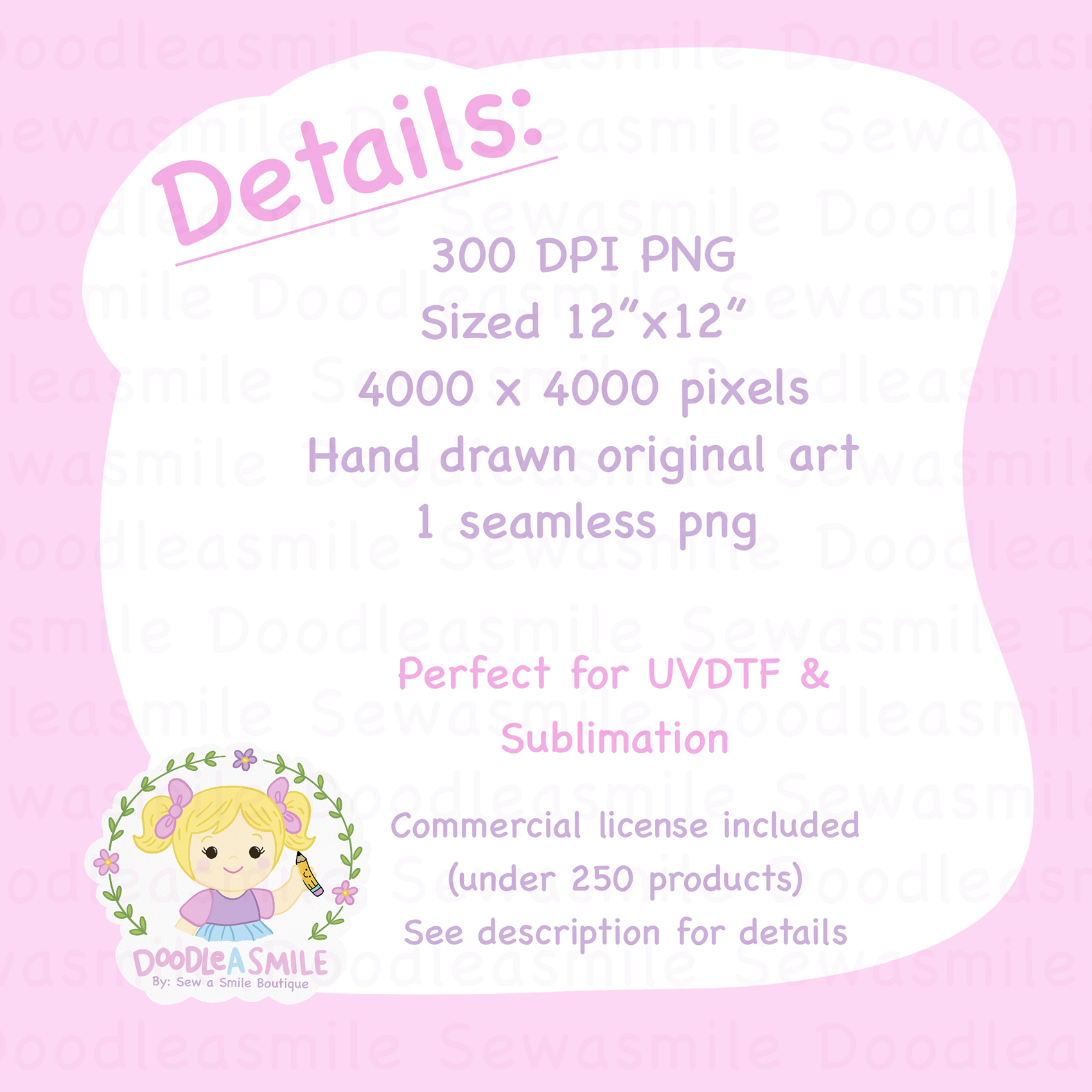 Follow on Social Media : IG @Doodleasmile Doodle A Smile by Sew A Smile Boutique holds the copyright for all files. (All rights reserved).