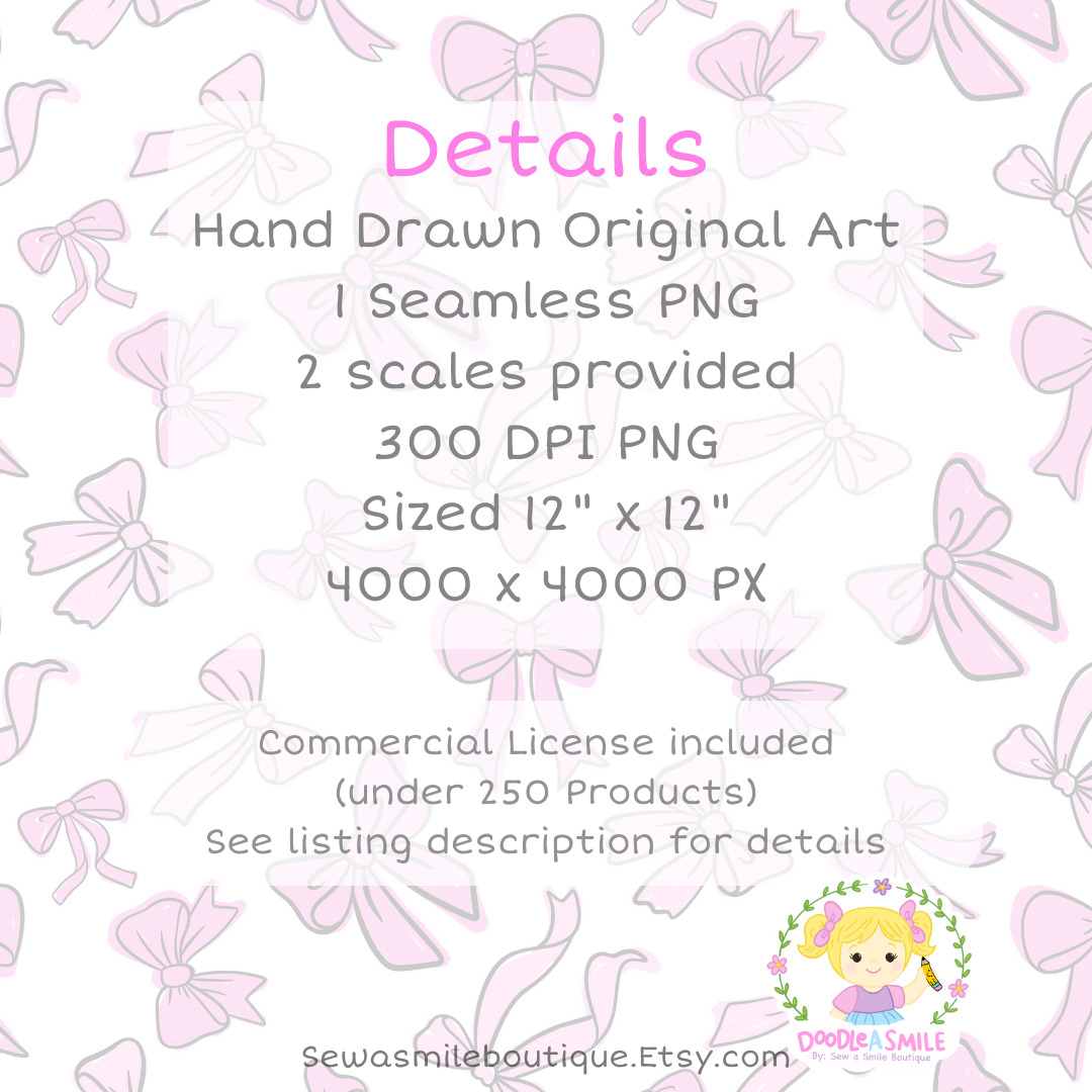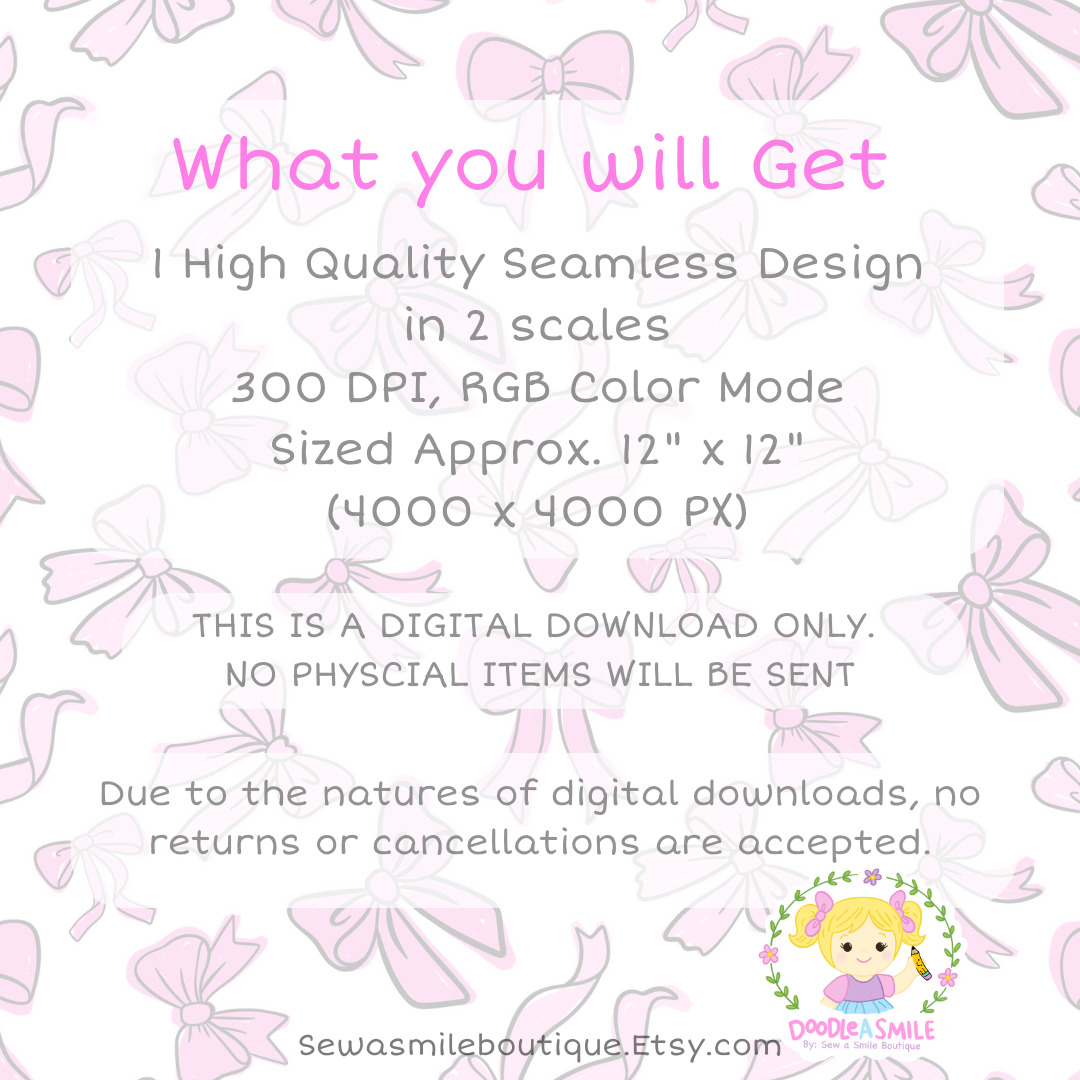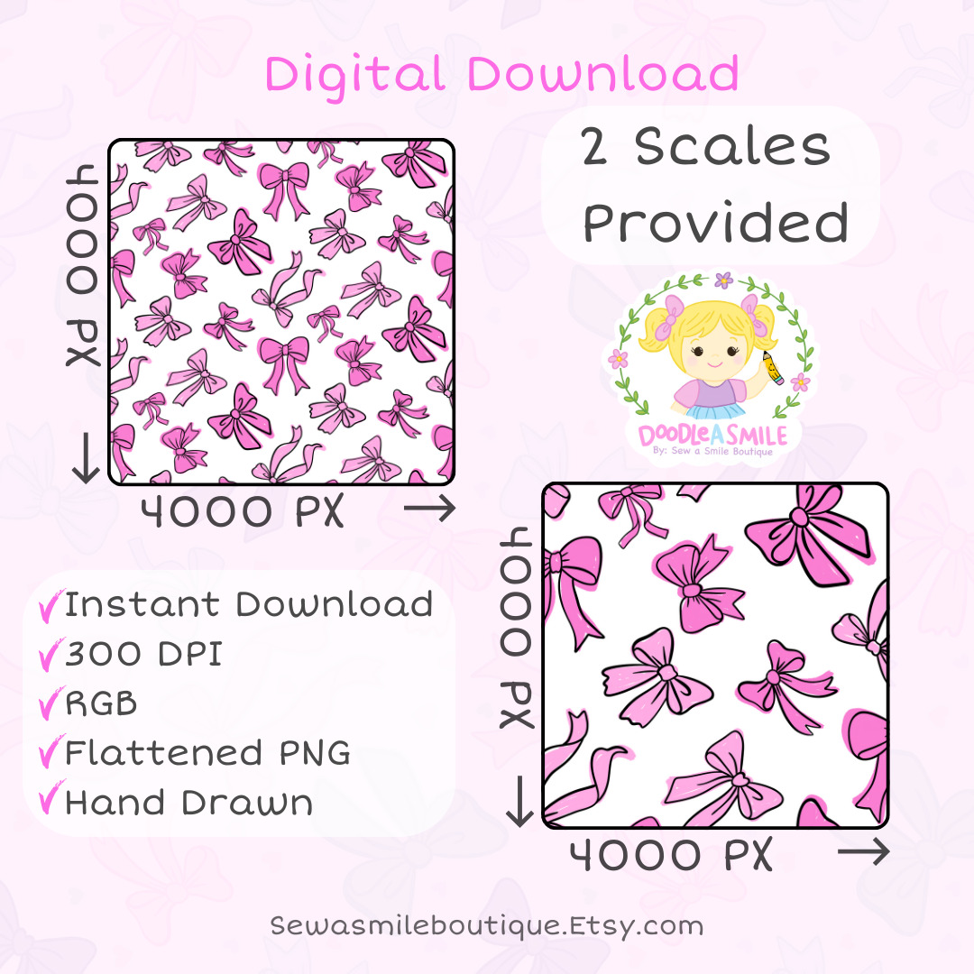 Pink Coquette Bows Seamless Pattern Add a sweet, feminine touch to your projects with this Hand Drawn Bows Seamless Pattern PNG for Fabric. Featuring adorable pink bows in a cute hand-drawn style, this seamless digital paper is perfect for sublimation, fabric printing, POD products, scrapbooking, and creative crafts. β Instant digital download β Seamless repeat design β Commercial use included for small shops