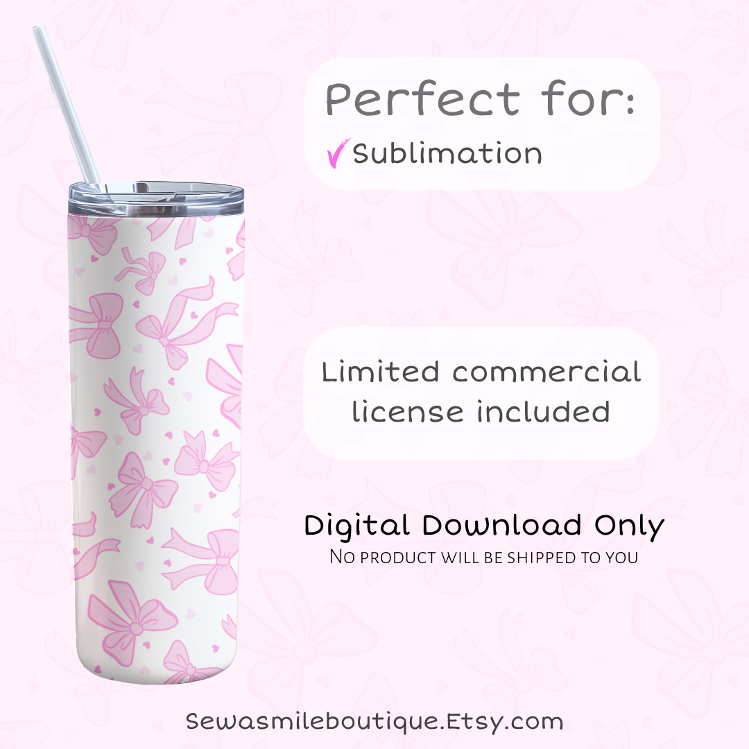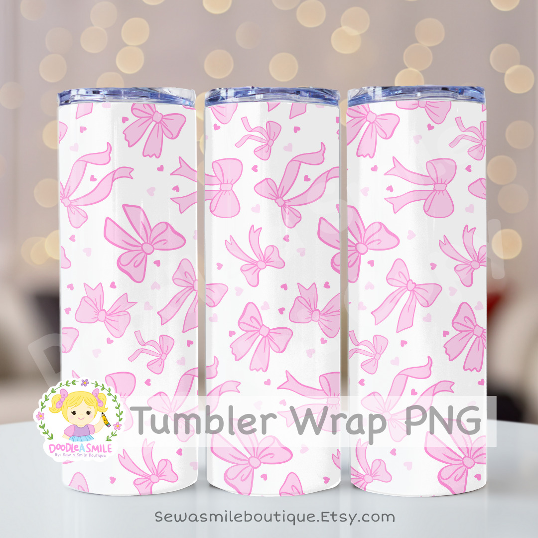 Coquette PINK Bow Tumbler Wrap PNG Add soft, feminine charm to your tumblers with this Coquette Pink Bow Tumbler Wrap PNG. Featuring a seamless bow design in a cute, girly style, this 20oz skinny tumbler PNG is perfect for creating trendy and elegant tumblers. Includes a high-quality digital download ready for commercial use.