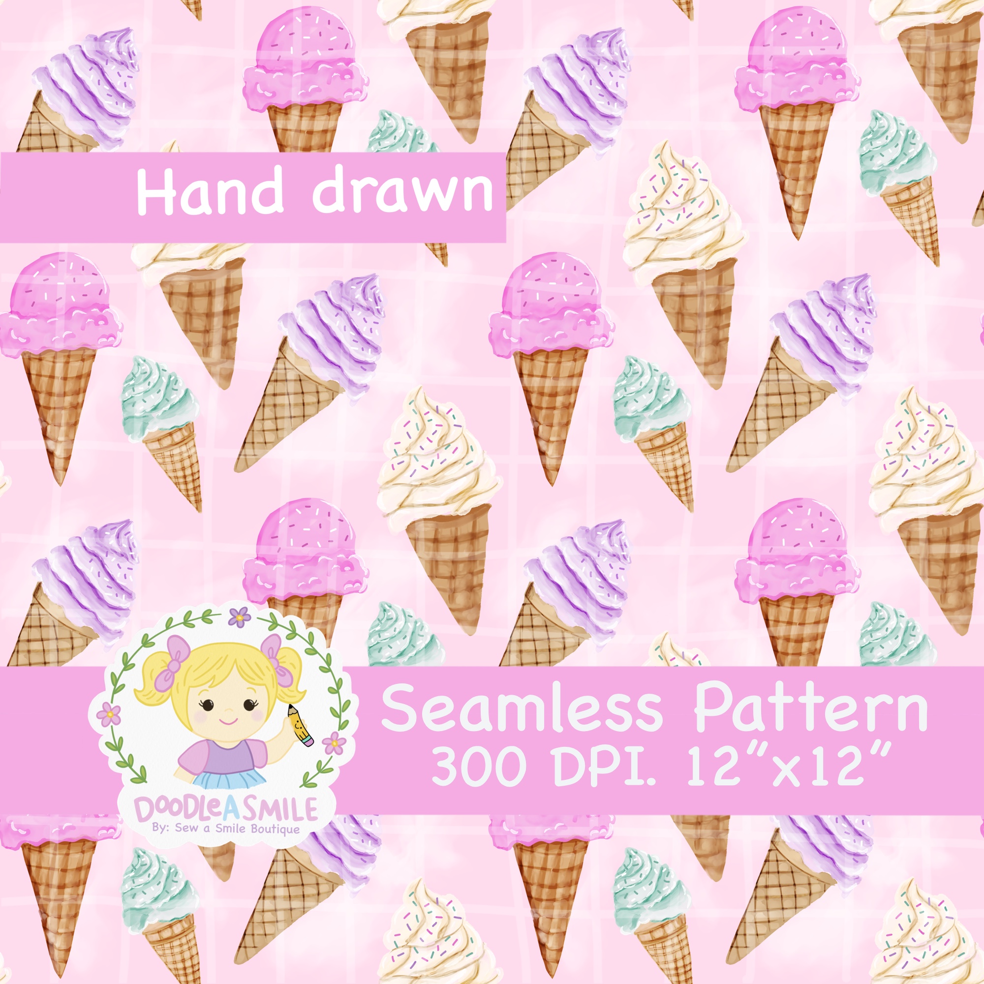 THIS IS NOT A PHYSICAL ITEM Pastel Ice Cream seamless pattern is a hand drawn design featuring cute pastel ice cream cones. This ice cream cone pattern is perfect for fabric projects, stationary, scrapbooks, and more – the possibilities are endless!