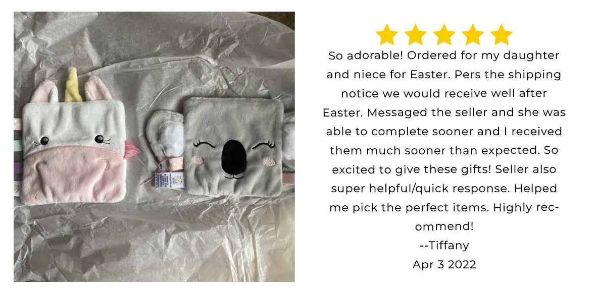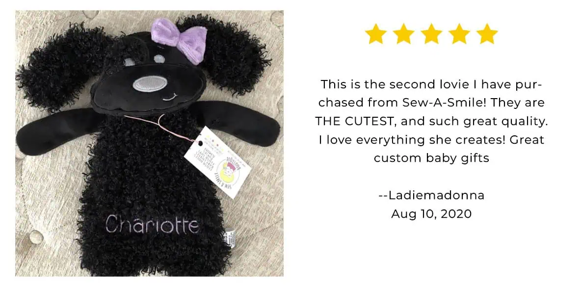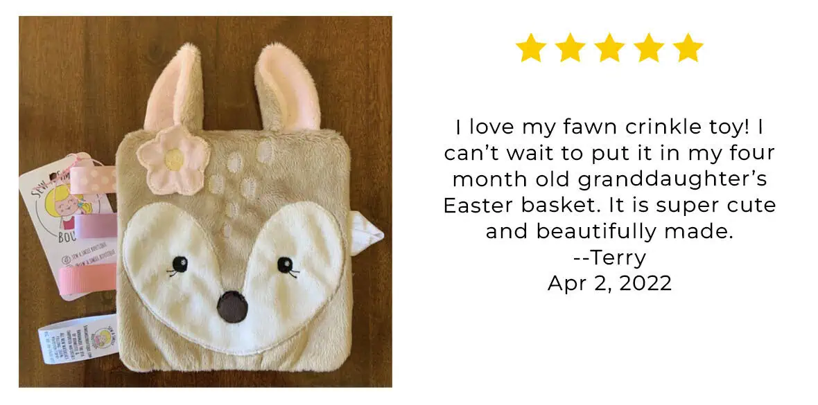 The fawn has to be my favorite crinkle toy and lovey! It’s so cute! The personalization makes the gift even better! Lisa is so great to work with!
