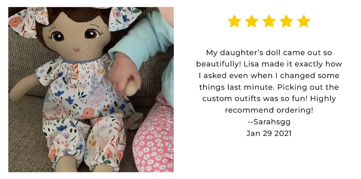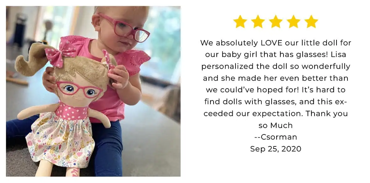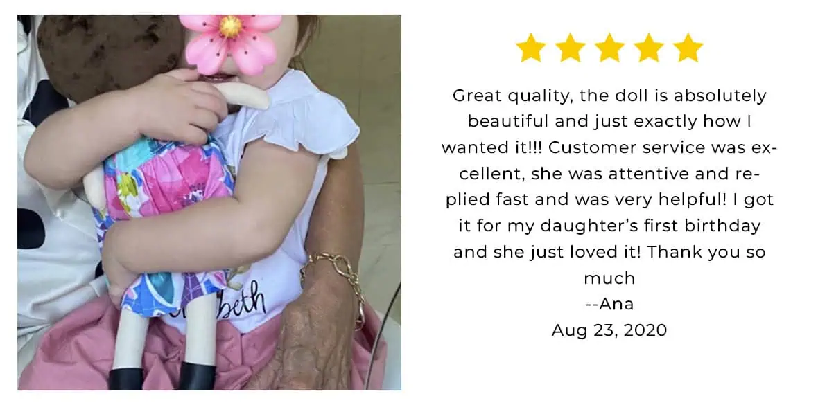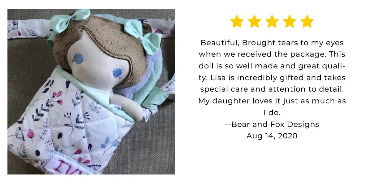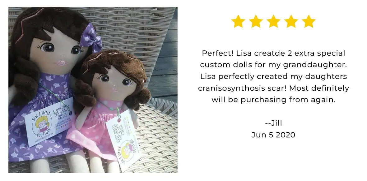I didn’t know a doll could make me cry. My daughter was born with a very rare blue birthmark on her head and I searched high and low for a look alike doll to incorporate it to make her feel special and included when I discovered this shop! Lisa stayed in constant communication and was absolutely amazing to work with and exceeded my expectations! The doll is absolutely perfect and I cannot wait to give it to my daughter for her birthday!